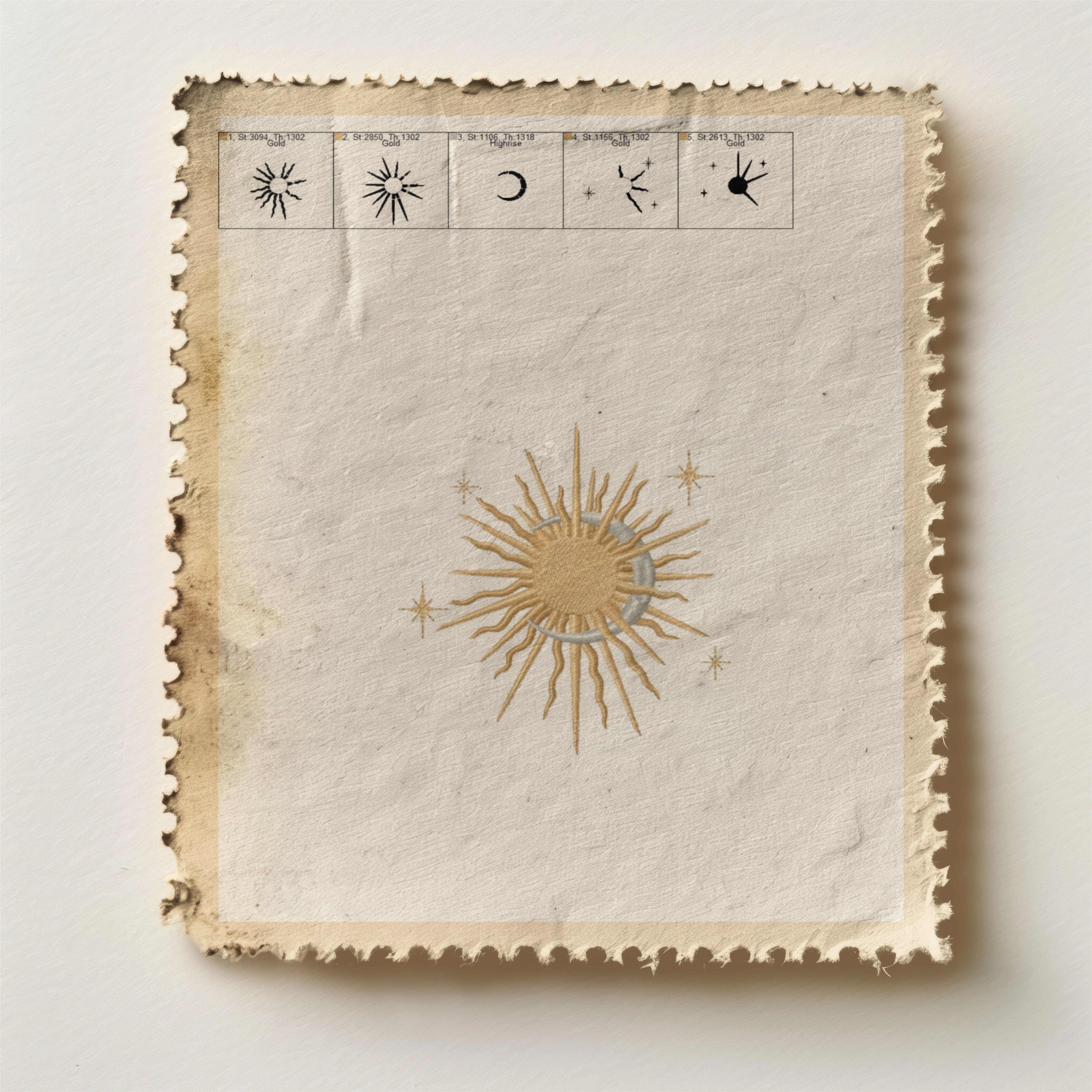 Clean, minimal, and elevated — with a radiant embroidered sun that instantly draws the eye.